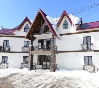Hotel GoodAura is located in the Center of the Ski Resort Gudauri (10 minutes’ walk from the first ropeway, 650 meters) The four-story hotel opened in October 2013. GoodAura is distinguished with its marvelous prospect and huge panoramic windows. The pleasant surrounding and modern design provide maximum comfort and relaxation. The location of the nearest pharmacy, hospital, SPAR supermarket, ATMs is 250 meters. Transfer to the ski lift and back is included in the price. The hotel has 14 rooms and can accommodate up to 36 people. There is SPA with sauna, steam room, jacuzzi and swimming pool. GoodAura also has separate billiard and fireplace room.