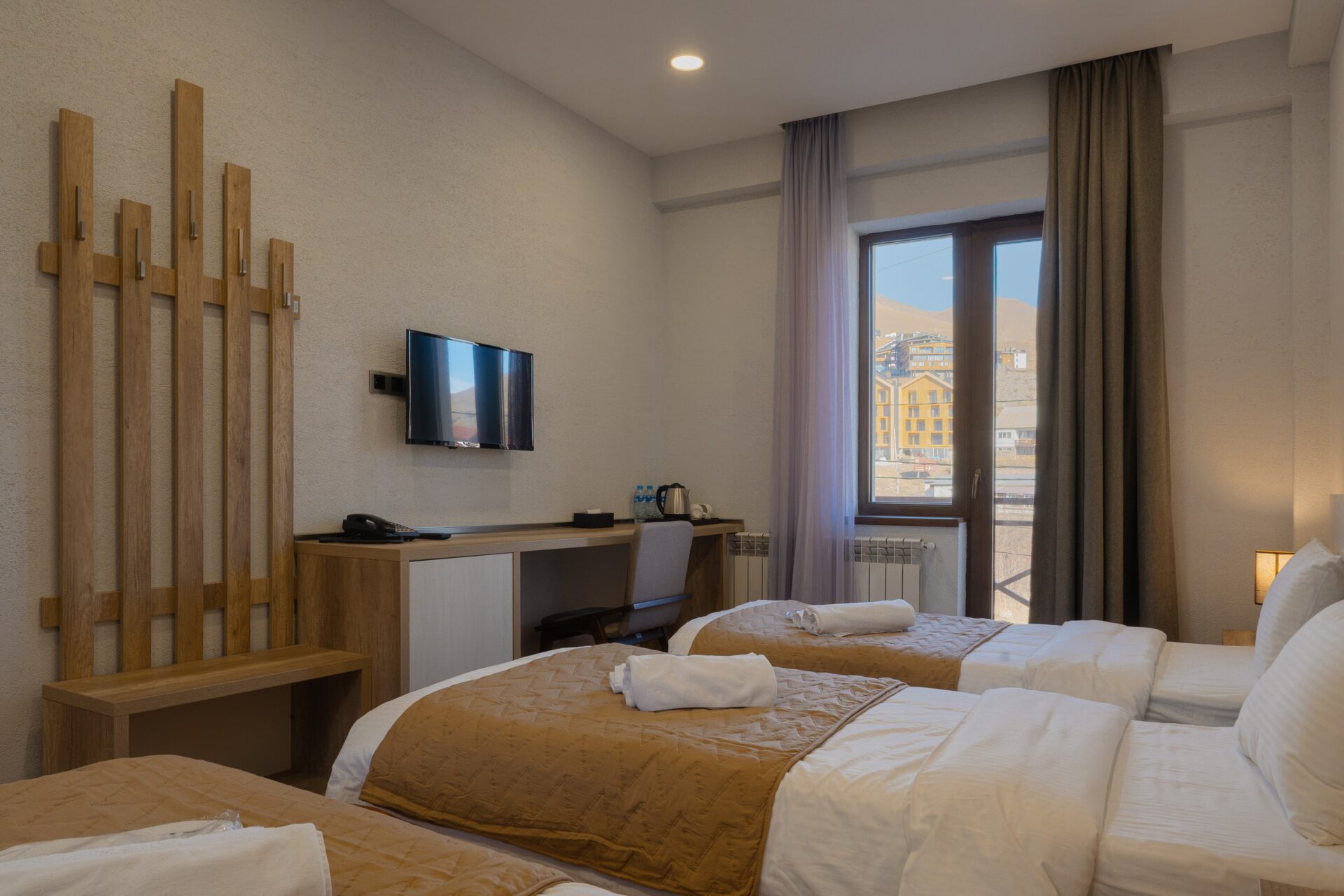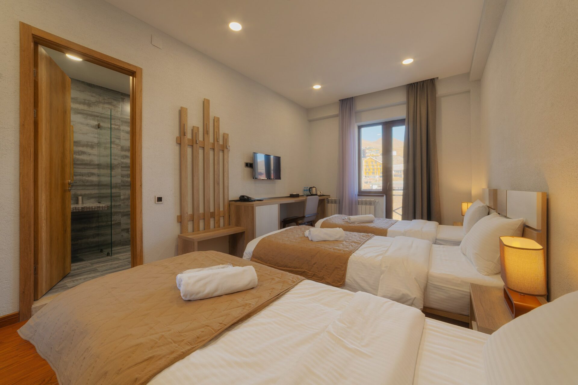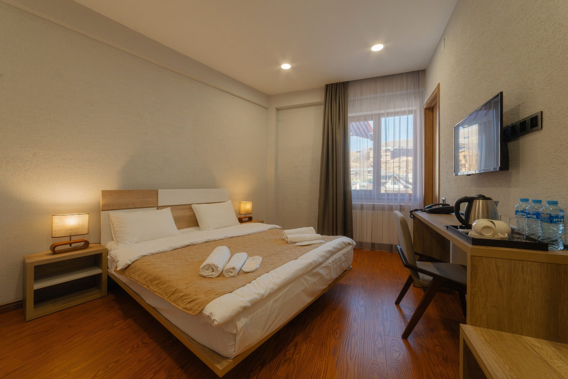 Уютный отель Ereto, управляемый компанией Snow Time, расположен на горнолыжном курорте Гудаури, всего в 500 метрах от первого подъемника в центральном Гудаури за зданием полиции. Из отеля открываются захватывающие виды на горы. В пешей доступности находятся бары, рестораны, супермаркеты, спа-центры, банкоматы, пункты обмена валюты и медицинский центр.